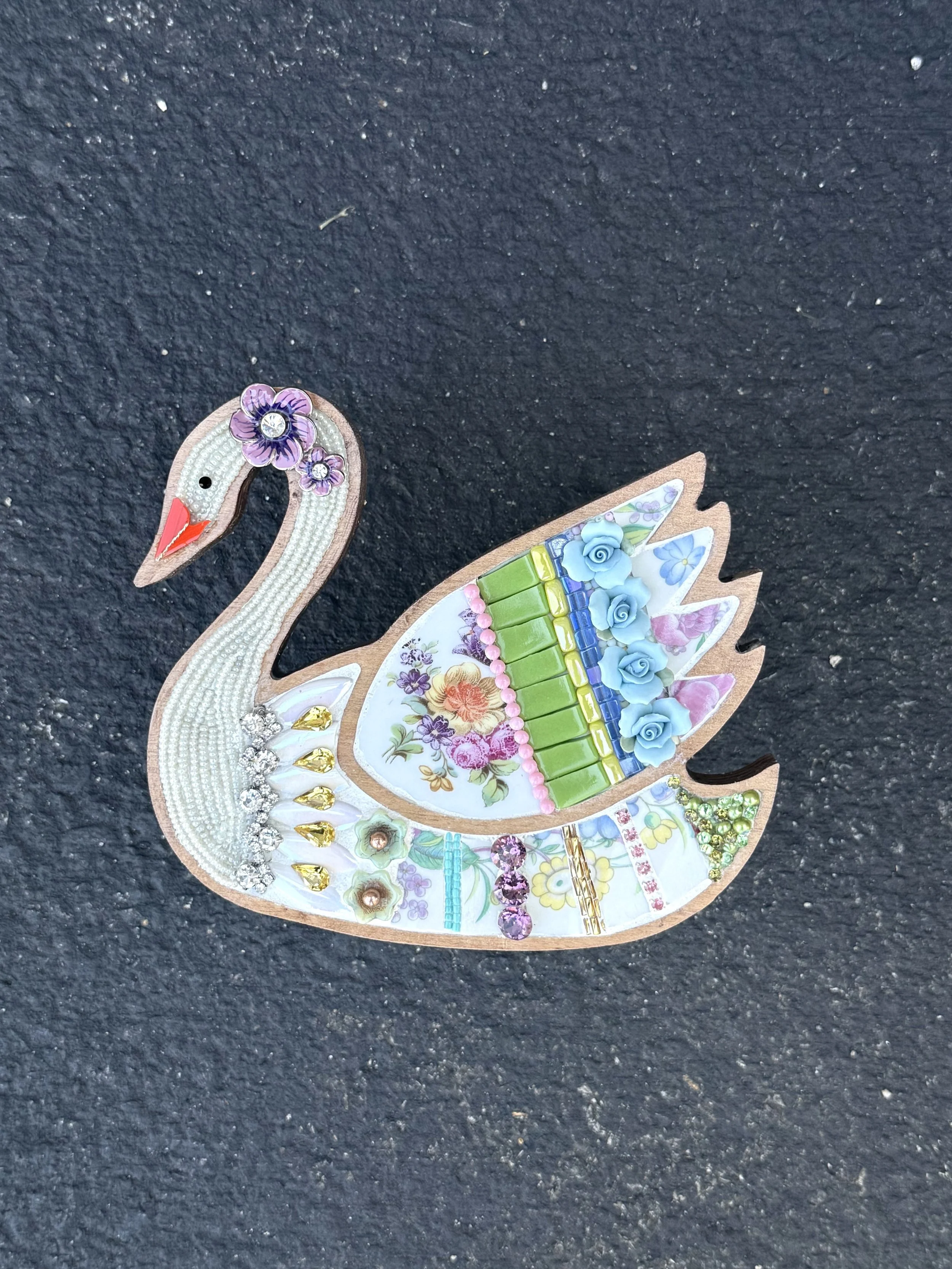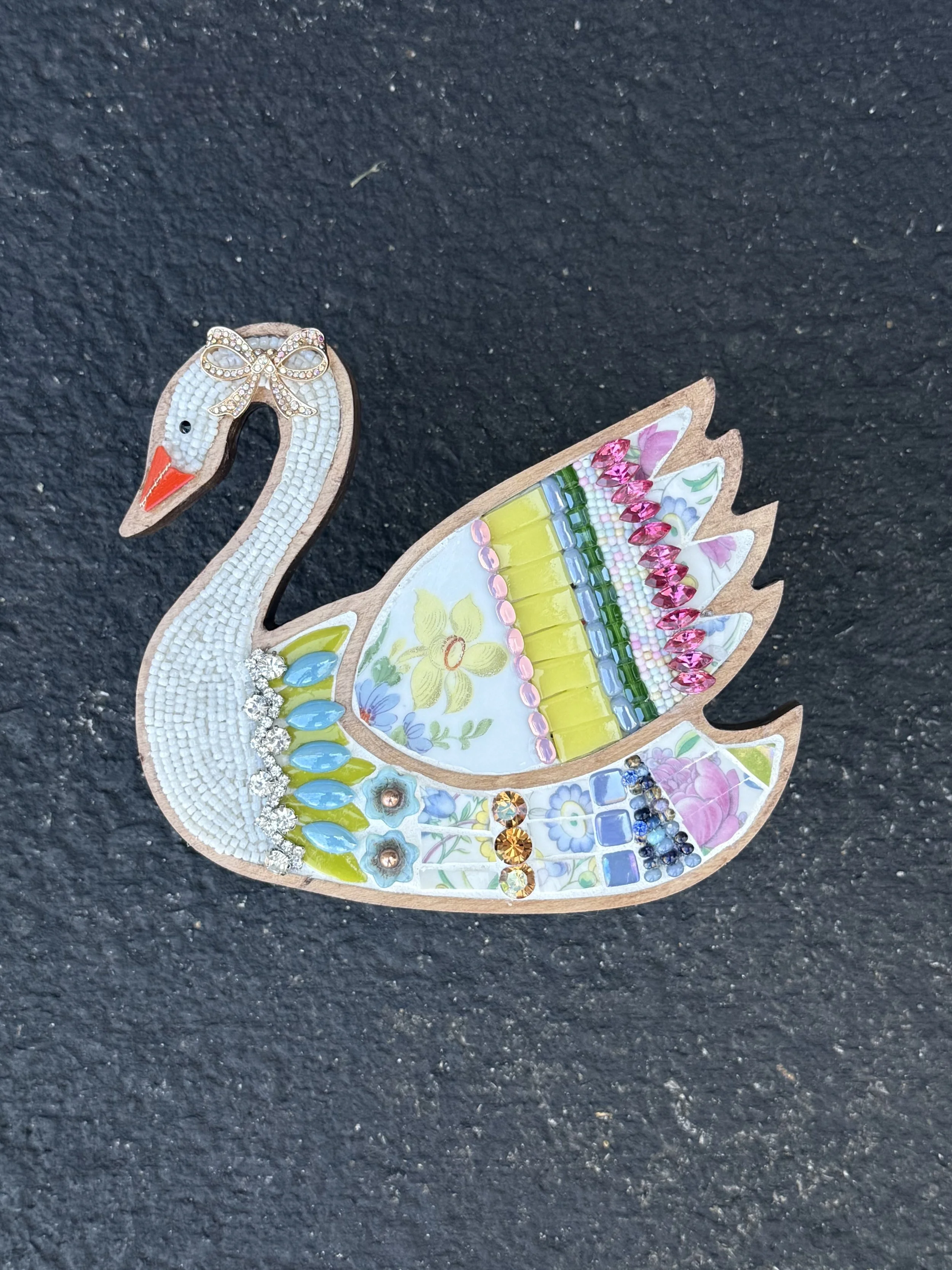 I have been working on these swans for almost 3 months. So much trial and error. Designs not working. Finally completed and I think I am satisfied. A definite learning curve. Forms purchased thru Sharra Frank Mosaics.